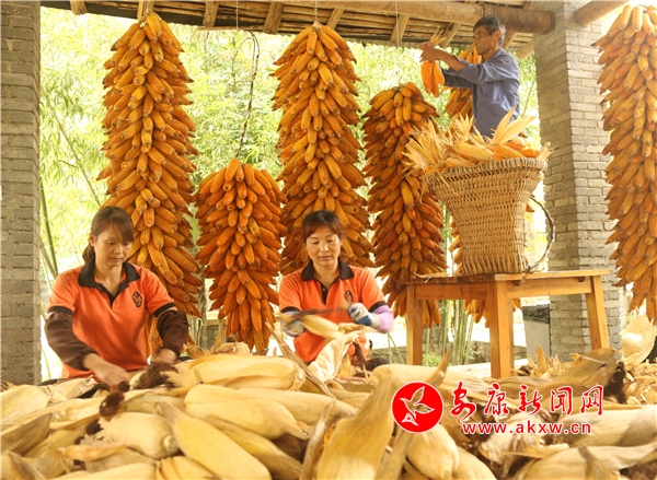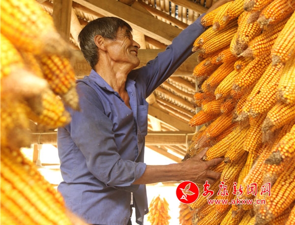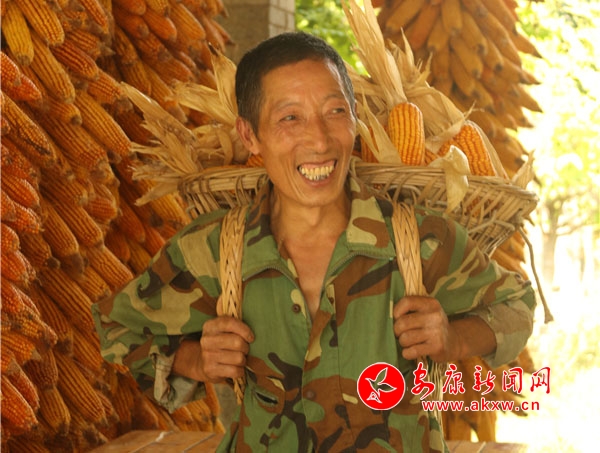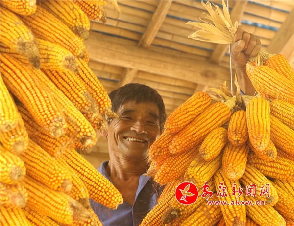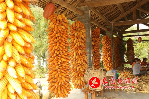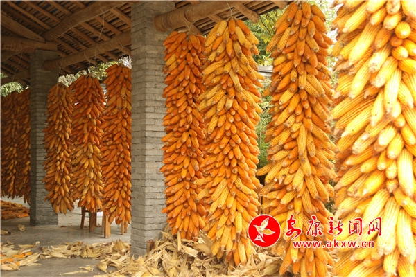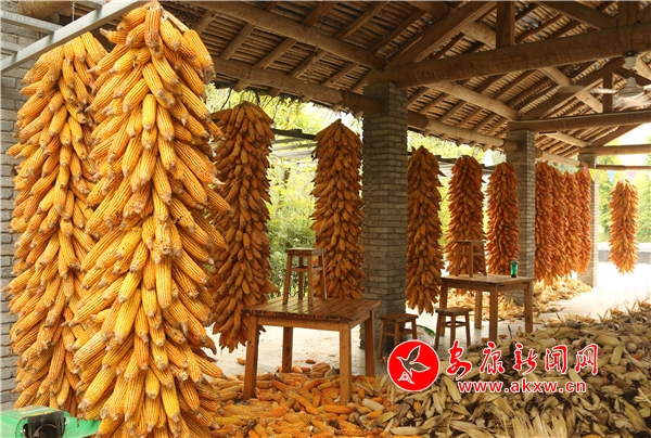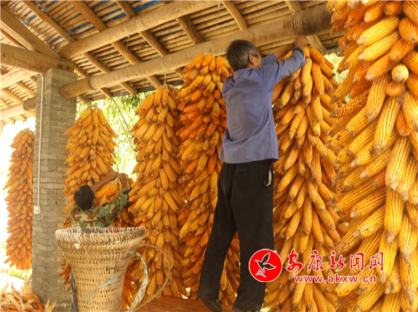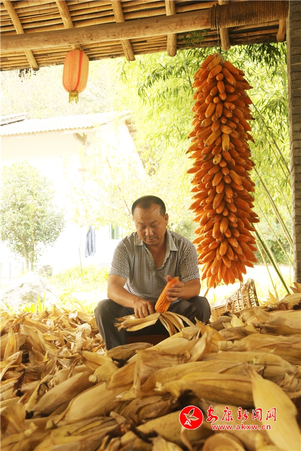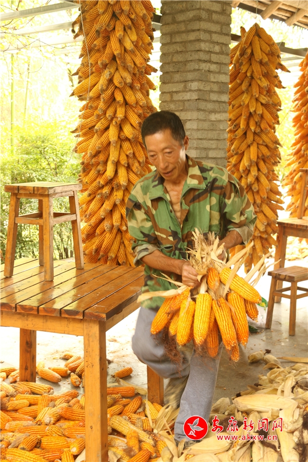 辛勞了大半年的村民,面對掛滿庭院的金色玉米,掩不住內(nèi)心豐收的喜悅和滿意的笑容。Kn6安康新聞網(wǎng)