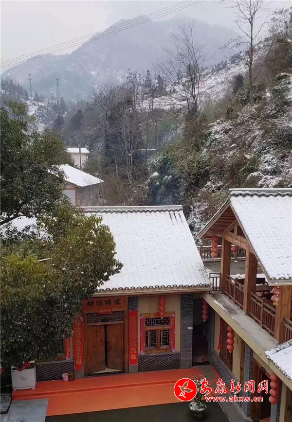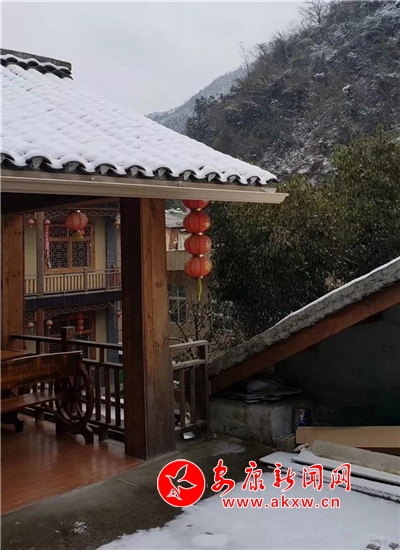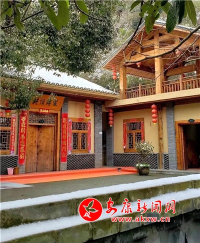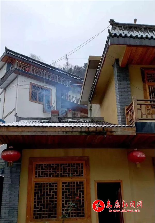 紅屋檐、紅格窗、紅木門、紅楹聯(lián)、紅地毯,還有那懸掛在屋頂上隨風舞動的紅燈籠,在瑟瑟寒風和茫茫白雪中,才顯其妖嬈展姿。這里,是紅與白色澤、熱與冷色溫的匯聚。紅,是一枝梅,是數盞燈,是萬家火,是山里人熱騰騰好日子的主色調……
