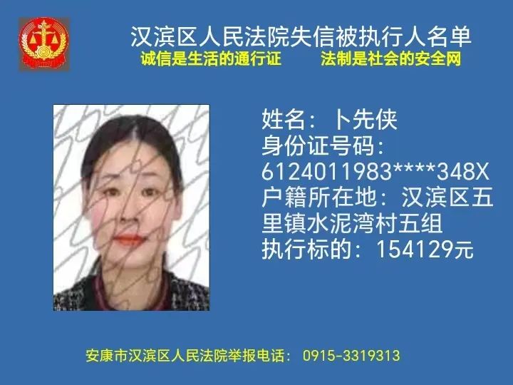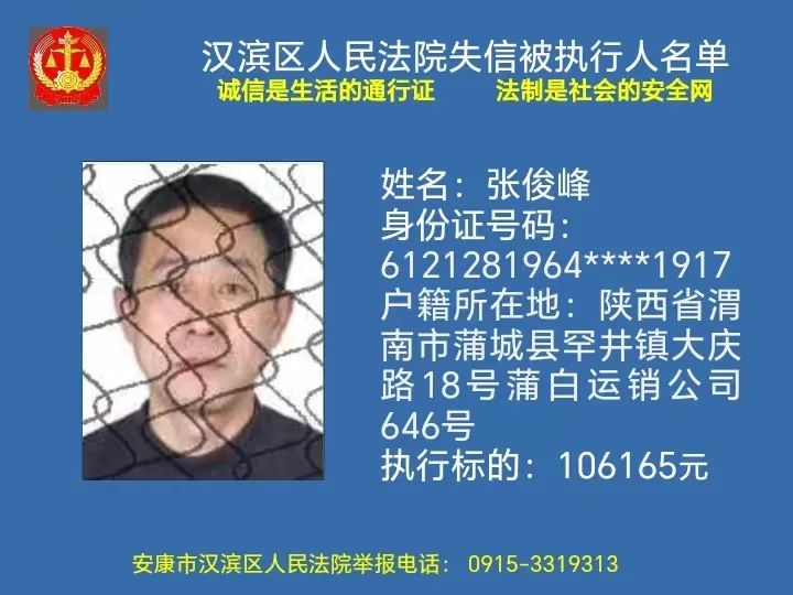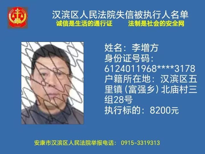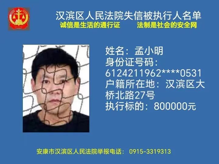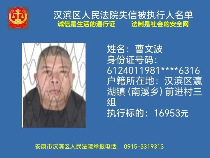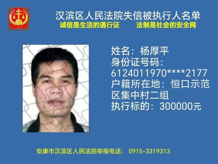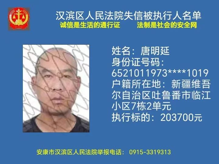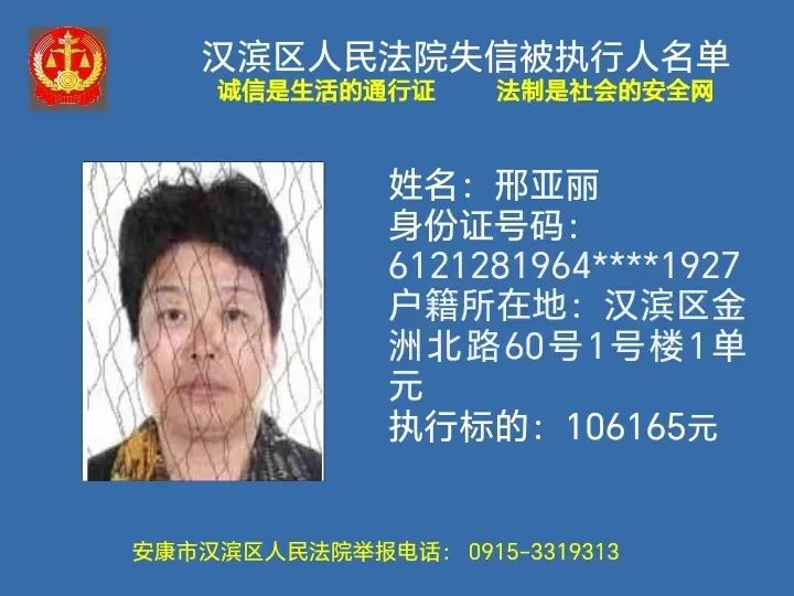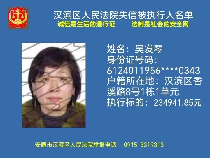 曝光失信 | 安康市漢濱區(qū)人民法院失信被執(zhí)行人曝光名單(2023年第7期)