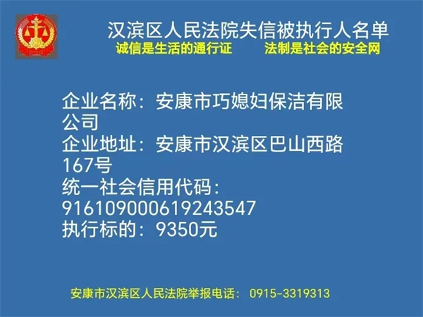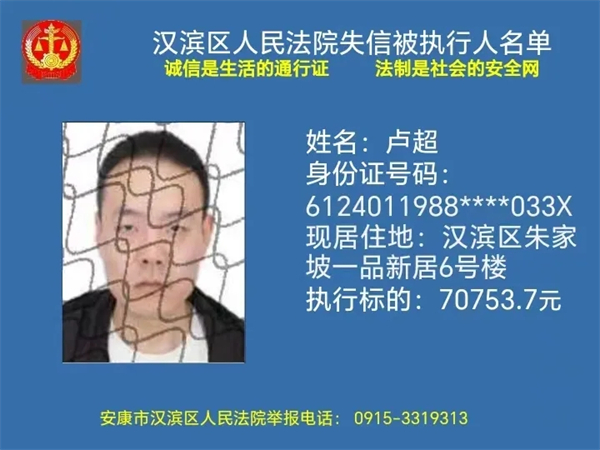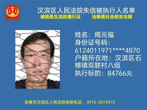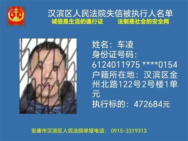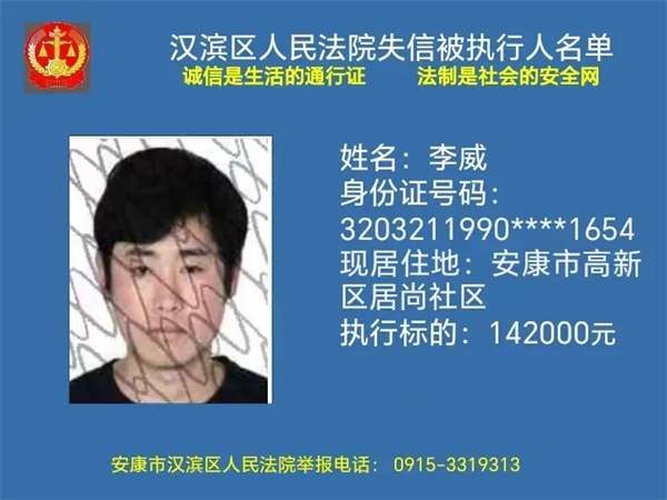 曝光失信 | 漢濱區(qū)人民法院失信被執(zhí)行人曝光名單(2024年第1期)