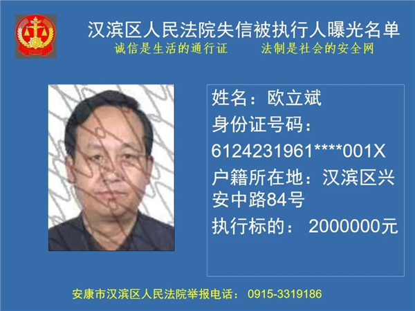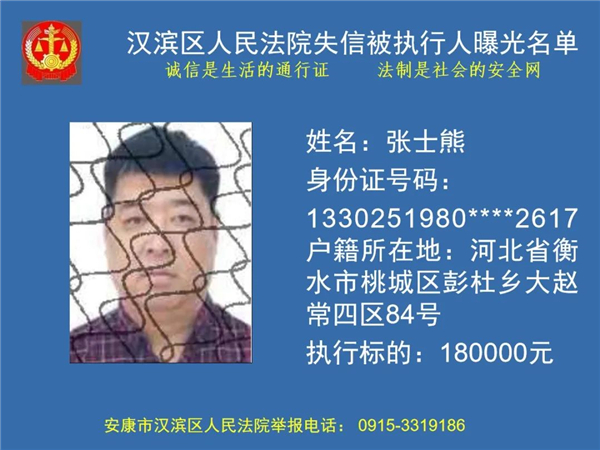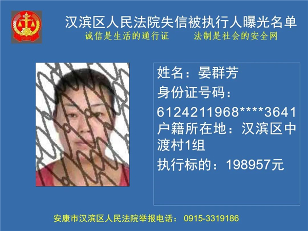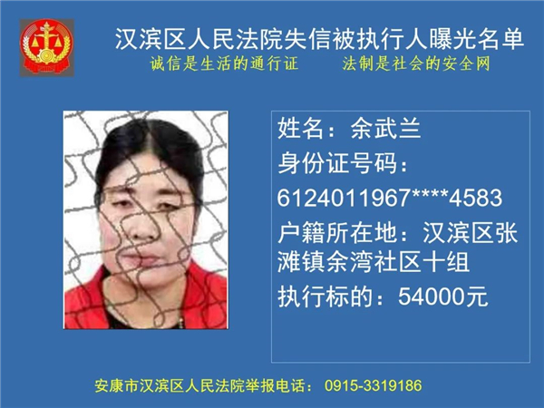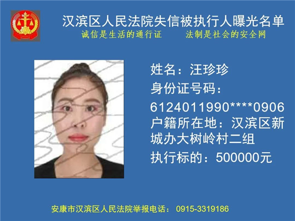 曝光失信 | 安康市漢濱區(qū)人民法院失信被執(zhí)行人曝光名單(2022年第1期)