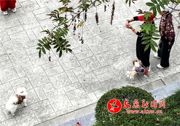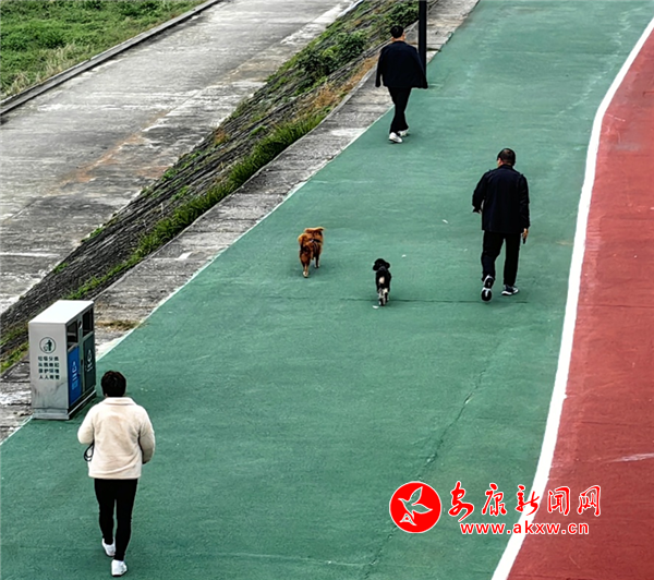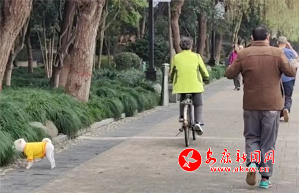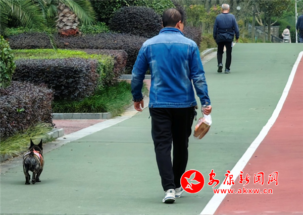 11月8日下午,金川街沿江步道有市民遛狗未牽繩。(圖文/馬歡)2w8安康新聞網(wǎng)