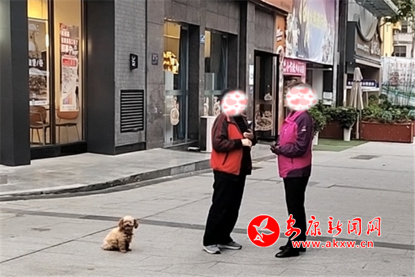 11月9日上午,大橋路鑫街口人行道上有市民遛狗不牽繩。(圖文/周薇)f7S安康新聞網(wǎng)