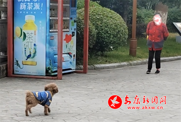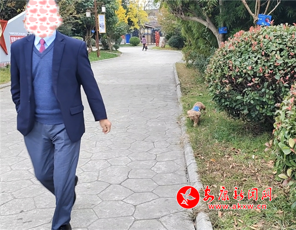 11月8日下午,興安公園小廣場內(nèi)有市民遛狗未牽繩,寵物犬綠地隨意便溺。(圖文/周薇)f7S安康新聞網(wǎng)