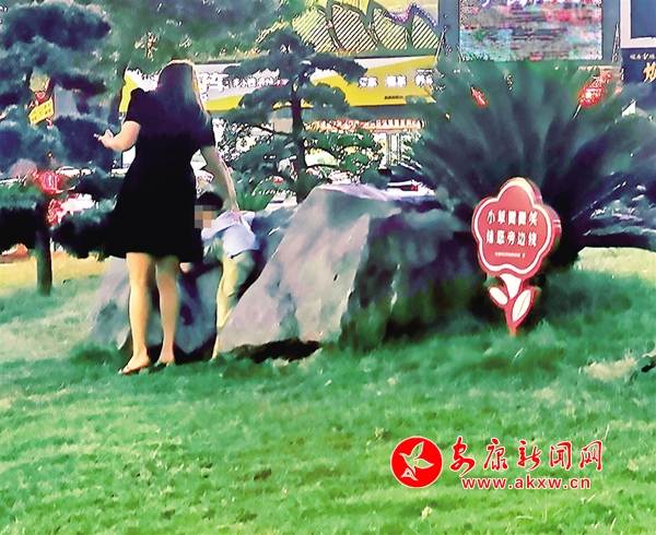 6月18日,有市民帶著孩子在安康城區(qū)西津漢江大橋(三橋)南頭街心綠地內(nèi)玩耍,旁邊就是“小草微微笑 請您旁邊繞”的公益廣告牌(圖1)。不時還有摩托車、電動車從人行……