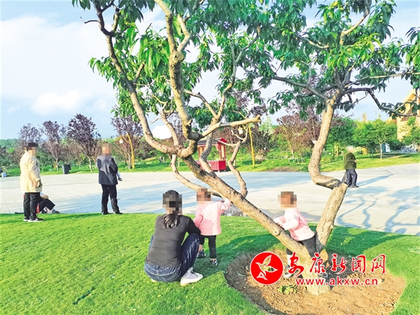 “五一”期間,在高新區(qū)桃花源景區(qū),個(gè)別游客帶領(lǐng)小孩未按照相關(guān)規(guī)定文明規(guī)范游玩,小孩攀爬樹木,很是危險(xiǎn)。(陳榮斌 攝)……