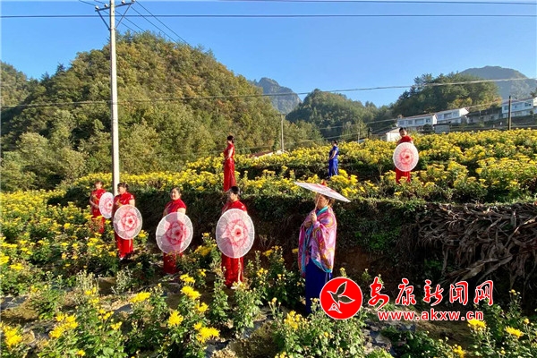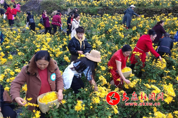 另一邊,百畝金絲黃菊爭相盛放,甚是好看。大家繞著山路健步而行。菊花種植基地里,游客們被花海吸引著,一邊賞花、采摘,一邊不由自主地踏入花海拍照。wKY安康新聞網(wǎng)
