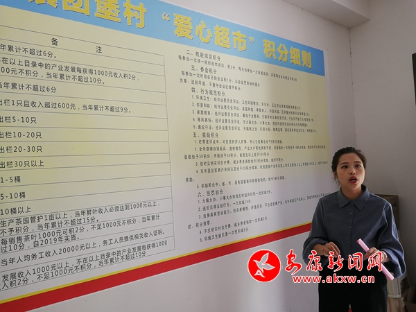 今年4月29日,61歲的田遠(yuǎn)樹和丈夫一起來(lái)到愛(ài)心超市,兌換了大米和消毒液,她說(shuō):“我們表現(xiàn)好,就能兌換積分拿東西,政策好啊”。原來(lái),他們一家種茶、養(yǎng)蜂、養(yǎng)豬、養(yǎng)雞,因?yàn)楫a(chǎn)業(yè)發(fā)展的好,積分就高,后來(lái)田遠(yuǎn)樹被村里評(píng)為好媳婦,又有了加分項(xiàng)目。CiJ安康新聞網(wǎng)