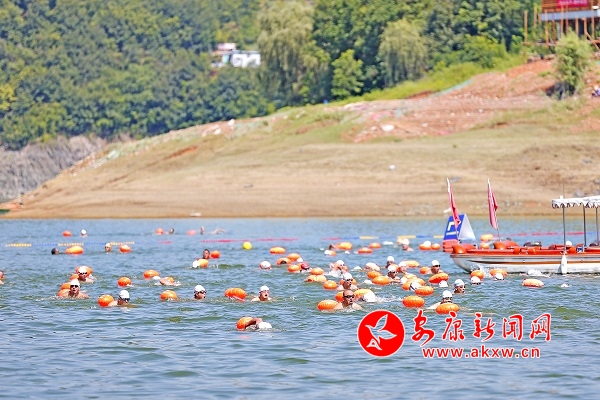 比賽現(xiàn)場,選手們你追我趕,在寬廣的湖中盡情體驗湖泊暢游的快感,享受著健身運動帶來的快樂。本次比賽場地選在瀛湖風景區(qū)翠屏島湖面,相較于傳統(tǒng)賽道比賽模式,天然水域上的比賽不但是游泳技巧的較量,更是勇氣、毅力、耐力的比拼。