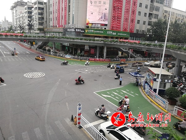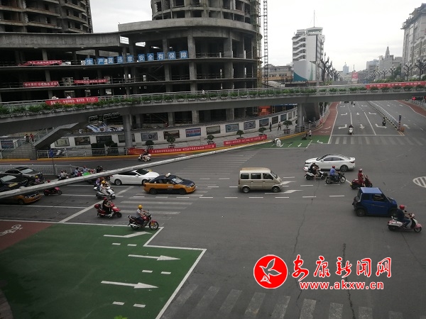 8月2日,記者在中心城區(qū)馬坎十字發(fā)現(xiàn)了道路新增綠色引導(dǎo)區(qū)域,記者從漢濱交警大隊了解到,目前城區(qū)除了馬坎十字之外,中心廣場十字、一橋橋南十字,東堤十字的三車等待區(qū)也在同步施劃中,警示車輛各行其道。gJv安康新聞網(wǎng)