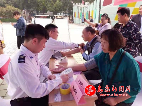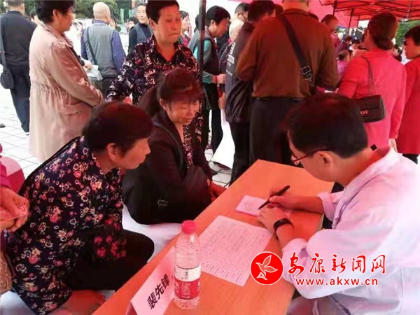 救心義診活動開始后,參展醫(yī)院工作人員現(xiàn)場發(fā)放宣傳單,提供專家義診咨詢,并為市民免費(fèi)測血壓,測血糖,義診免費(fèi)贈藥;顒蝇F(xiàn)場測血壓、血糖,領(lǐng)取贈藥的群眾排起長隊(duì),醫(yī)護(hù)人員主動攙扶行動不便的老人,耐心進(jìn)行心血管疾病的防治及健康生活常識指導(dǎo)。