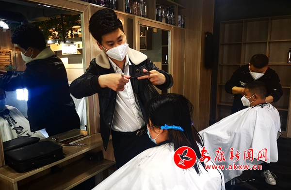 記者注意到,24日當(dāng)天,安康街頭的部分理發(fā)店正在逐步恢復(fù)營(yíng)業(yè)。在市中心廣場(chǎng)的一家理發(fā)店里,該店采取了進(jìn)店戴口罩、量體溫、每?jī)蓚(gè)小時(shí)消毒一次等一系列防護(hù)措施,來保障員工和顧客的安全。8yx安康新聞網(wǎng)