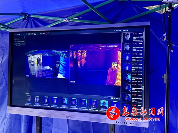 在漢濱初中高新校區(qū)校門口,記者看到學(xué)生們戴著口罩保持著安全距離在排隊進入校內(nèi),旁邊還有很多幫孩子拿行李的家長在向他們交代相關(guān)注意事項。排在前列的學(xué)生有序?qū)⒆约旱慕】敌畔⒈斫唤o負責(zé)檢查的工作人員核對,通過之后會進入一個設(shè)有熱成像紅外線人體測溫儀的檢測點,每個從里面經(jīng)過的學(xué)生體溫都會出現(xiàn)在測溫儀的大顯示屏上,工作人員緊盯著屏幕排查異常人員。