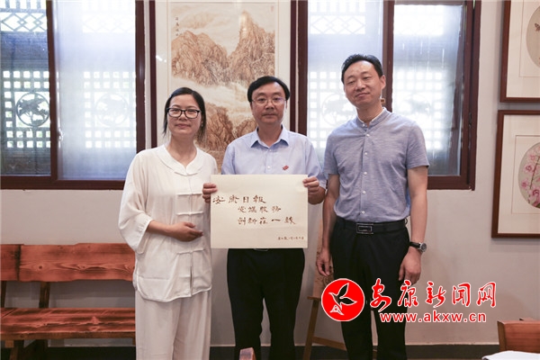 6月24日,李紅霞為安康日報社烙畫作字——“黨媒服務創(chuàng)新在一線”。烙畫又稱火筆畫,中國傳統(tǒng)藝術珍品,用火燒熱烙鐵在物體上熨出烙痕作畫。烙畫創(chuàng)作在把握火候、力度的同時,注重“意在筆先、落筆成形”。