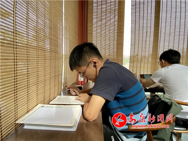 正在龍舟文化園閱讀吧內(nèi)看書的趙浩文是中南大學(xué)大一的學(xué)生,今年暑假他常常泡在閱讀吧學(xué)習(xí),“我一般早上八點(diǎn)鐘過(guò)來(lái)學(xué)習(xí)看書,中午吃個(gè)飯,然后看書看到下午六點(diǎn)多回家。每天都在學(xué)習(xí)英語(yǔ)知識(shí)以及預(yù)習(xí)大二的一些課程,感覺(jué)在閱讀吧學(xué)習(xí)很安靜,而且里面裝有空調(diào),環(huán)境好,F(xiàn)在有些場(chǎng)所恢復(fù)了24小時(shí)的自助服務(wù),也滿足了我們夜間讀書的需求。閱讀吧是我們這些學(xué)生學(xué)習(xí)和備考的理想場(chǎng)所。”