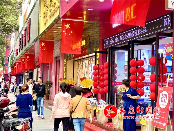 街頭上還有不少對(duì)著國旗和喜慶裝飾拍照留影的民眾,他們覺得道路兩側(cè)懸掛鮮艷的五星紅旗,扮靚美化了整座城市,讓大家真真切切地感受到了熱烈的國慶氣氛,更感受到一種欣欣向榮的新生態(tài)。