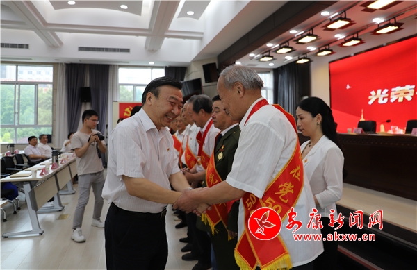 為慶祝中國共產(chǎn)黨成立100周年,今年黨中央首次向黨齡達(dá)到50周年、一貫表現(xiàn)良好的黨員頒發(fā)“光榮在黨50年”紀(jì)念章。據(jù)了解,經(jīng)各機(jī)關(guān)基層黨組織逐級(jí)統(tǒng)計(jì)、公示、審核,市直機(jī)關(guān)共有412名黨員符合上述條件。此次會(huì)議共邀請(qǐng)了10名老黨員代表到會(huì),向他們頒發(fā)“光榮在黨50年”紀(jì)念章。