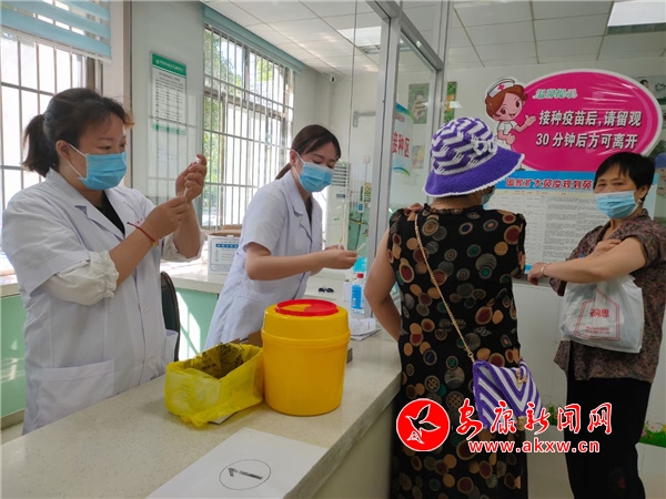 為保證居民接種,社區(qū)所有醫(yī)護人員放棄個人休息時間,早七晚六不午休,充分發(fā)揮黨員先鋒模范帶頭作用,扎根在工作崗位上。xbG安康新聞網