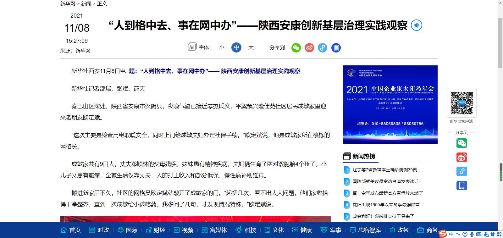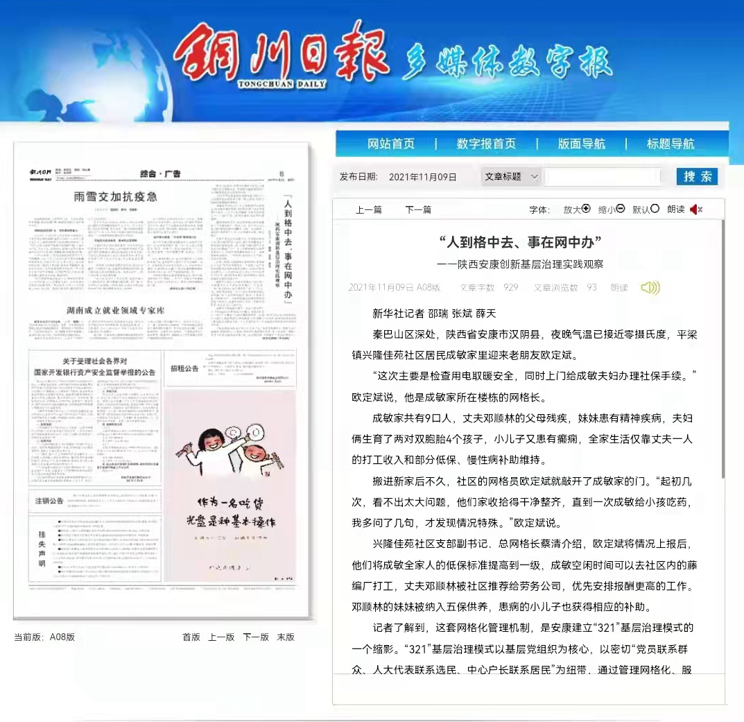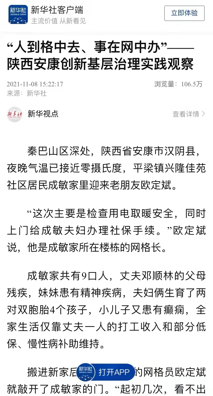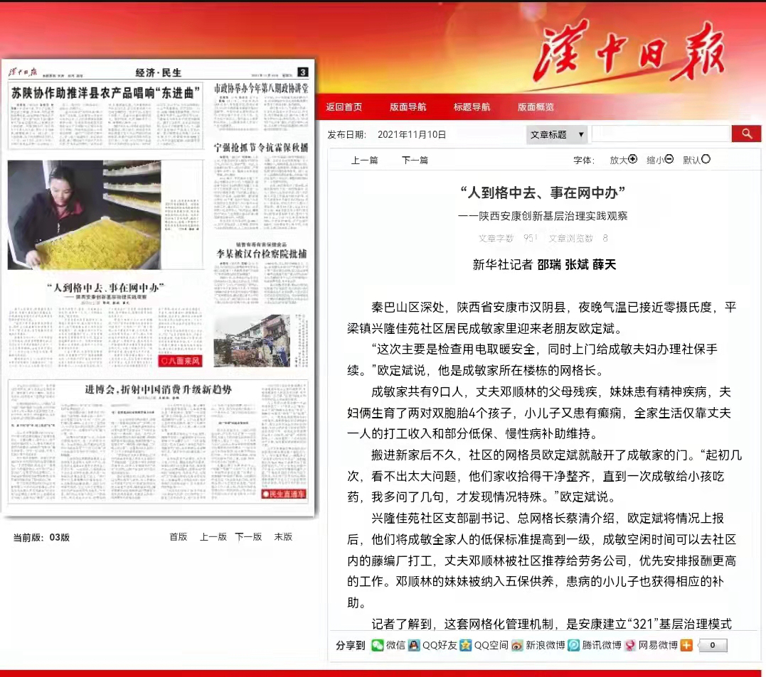 安康“321”基層治理模式受到新華社等多家媒體關(guān)注
