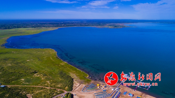 如今的紅堿淖煙波浩渺、水天一色、成群的遺鷗在這片廣袤的水域自由翱翔。從天空俯瞰,猶如一顆奪目的藍(lán)寶石被周圍被綠色的草甸包裹著,游艇飛馳在湖面上,沙灘上游人自在、悠閑、愜意。