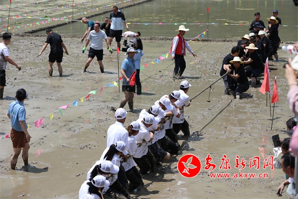 以藍(lán)天為背景,水田作舞臺(tái)。來(lái)自湖北省十堰市、白河縣、旬陽(yáng)市各鎮(zhèn)和仙河鎮(zhèn)各村(社區(qū))20個(gè)隊(duì)伍、400名運(yùn)動(dòng)員展開(kāi)一場(chǎng)場(chǎng)運(yùn)動(dòng)競(jìng)賽。只見(jiàn)隊(duì)員們挽起褲腳,赤腳下田,放肆追逐,盡情歡呼,插秧比賽、稻田拔河比賽、稻田摔跤比賽、渾水摸魚(yú)等環(huán)節(jié),重現(xiàn)歡鬧的勞作場(chǎng)景,上演著一場(chǎng)場(chǎng)關(guān)于泥、水、魚(yú)和人的快樂(lè)“較量”,觀眾也在還原農(nóng)耕場(chǎng)面原始風(fēng)俗、熱情勞作和農(nóng)忙氛圍中找到了童年最純真的模樣。6yQ安康新聞網(wǎng)