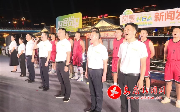 伴隨著一曲歡快的舞蹈《出水芙蓉》,新聞發(fā)布會(huì)正式拉開序幕。隨后,特色各異的文藝節(jié)目穿插進(jìn)行,舞蹈《活力寶貝》和歌曲《歡迎你到嵐皋來》,將現(xiàn)場(chǎng)氛圍引入一陣陣熱潮。第二屆巴山漢水“陜西村BA”體旅促商貿(mào)活動(dòng)組委會(huì)各工作組組長(zhǎng)、當(dāng)?shù)厍蜿?duì)和啦啦隊(duì)熱烈而又真誠(chéng)地發(fā)出賽事宣言:“一座城服務(wù)一個(gè)人,好客嵐皋歡迎您!”。