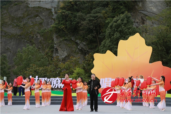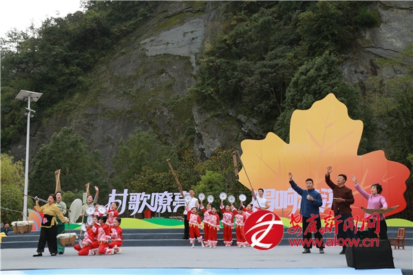 金秋時(shí)節(jié)的茨溝鎮(zhèn),萬畝紅葉、層林盡染。伴隨著歡快的鑼鼓聲,茨溝鎮(zhèn)、五里鎮(zhèn)、譚壩鎮(zhèn)三支隊(duì)伍輪番登場,不僅獻(xiàn)唱原創(chuàng)村歌,還展示特色產(chǎn)業(yè)、優(yōu)質(zhì)資源與地方文化,紛紛亮出獨(dú)具特色的“看家絕活兒”。歌伴舞《村歌飛揚(yáng)》《松壩謠》《幸福歌兒唱起來》唱出了鄉(xiāng)親們的幸福生活;以修建八一水庫為背景的安康歌謠《我來了》引發(fā)會場共鳴;民俗表演《龍的傳人》則將節(jié)目推向高潮。舞蹈、鄉(xiāng)村T臺秀、民俗表演、八岔戲等節(jié)目,或以傳統(tǒng)幽默詼諧的風(fēng)格,或以深情敘述的方式,展現(xiàn)鄉(xiāng)村新生活,為觀眾獻(xiàn)上一場別開生面的視聽盛宴,現(xiàn)場歡呼聲此起彼伏。tD9安康新聞網(wǎng)