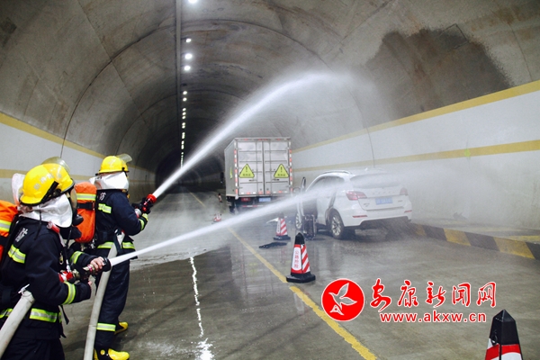 本網(wǎng)訊(記者 張喬) “報告,接110指令,541國道151KM+000M處柏枝埡隧道內發(fā)生一起小轎車與危險化學品運輸車發(fā)生追尾碰撞交通事故,可能發(fā)生;沸孤缎孤、燃……