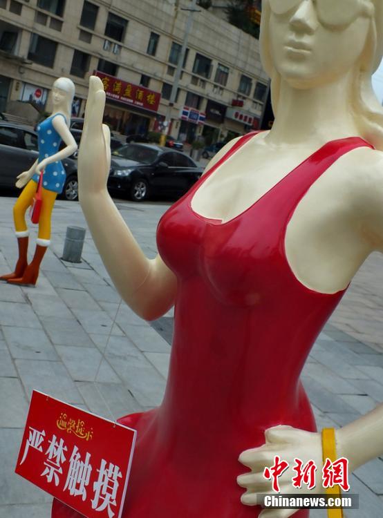 湖北一廣場性感模特塑像誘人“嚴禁觸摸”