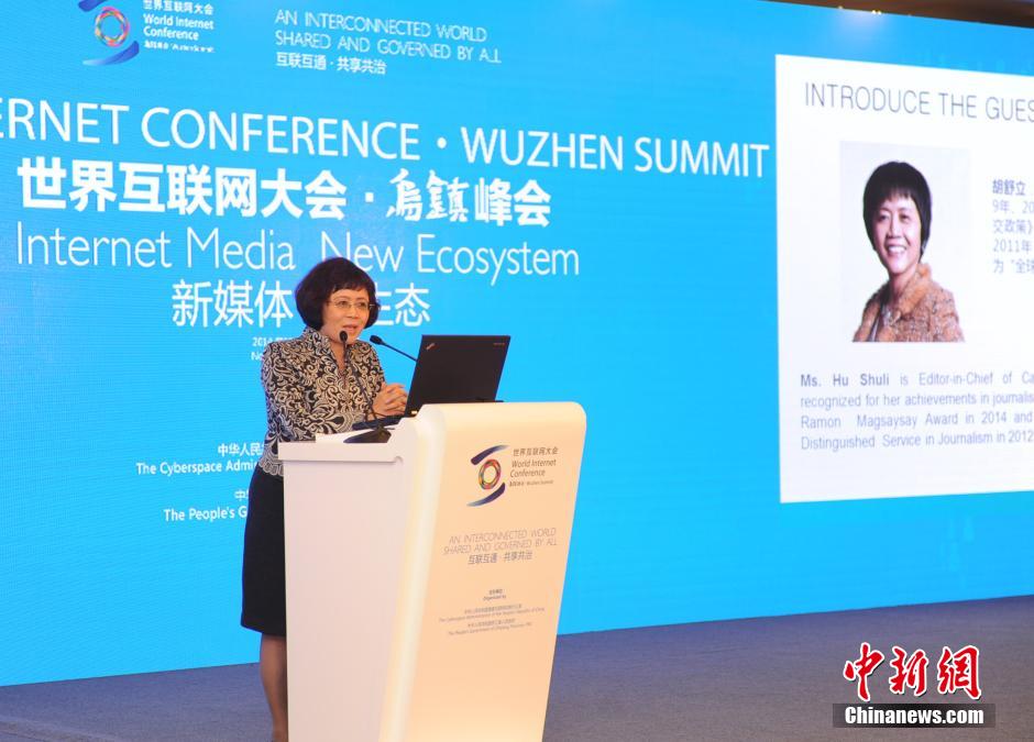 11月19日,財(cái)新傳媒總編輯胡舒立在烏鎮(zhèn)舉行的首屆世界互聯(lián)網(wǎng)大會(huì)新媒體分論壇上發(fā)言。當(dāng)天,世界互聯(lián)網(wǎng)大會(huì)在浙江烏鎮(zhèn)拉開帷幕。 中新社發(fā) 李晨韻 攝aa5安康新聞網(wǎng)
