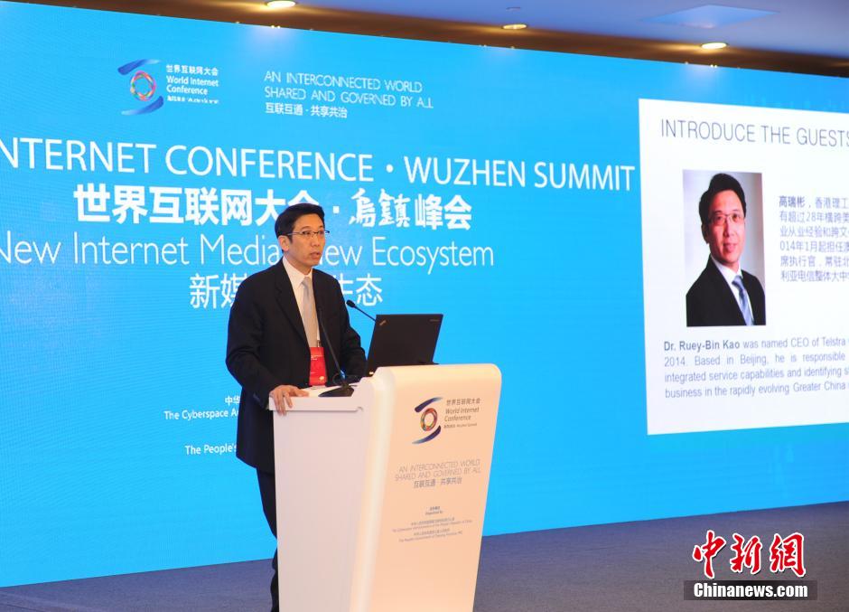 11月19日,澳大利亞電信大中華區(qū)CEO高瑞彬在烏鎮(zhèn)舉行的首屆世界互聯(lián)網大會新媒體分論壇上發(fā)言。當天,世界互聯(lián)網大會在浙江烏鎮(zhèn)拉開帷幕。 中新社發(fā) 李晨韻 攝aa5安康新聞網