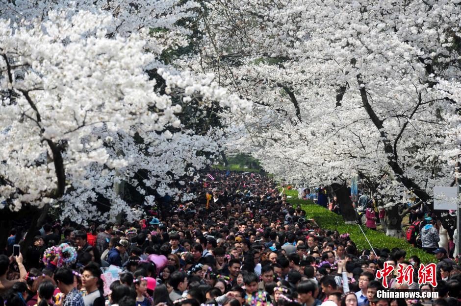 3月21日,武大櫻花盛開游客如織。當(dāng)日,武大櫻花盛開的首個雙休日。長約200米的櫻花大道上1000多株櫻花競相綻放,吸引著數(shù)萬游客,使寧靜的校園變成了熱鬧的公園。中新社發(fā)張暢 攝Suf安康新聞網(wǎng)