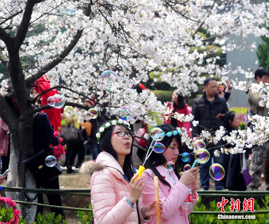 武大櫻花盡開(kāi)放 游客擠爆校園