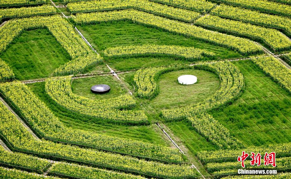 3月24日,安徽齊云山油菜花盛開金黃與一個“太極八卦圖”相映成趣。 中新社發(fā) 施廣德 攝