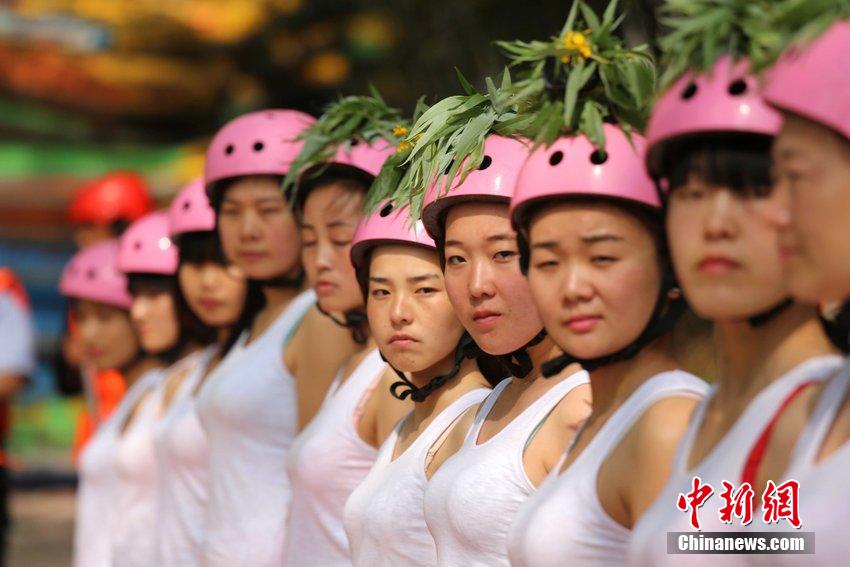 4月29日,河南省三門峽市女子漂流救援隊員佩戴偽裝成花草的視頻記錄儀,對漂流河道進行安全檢查。該視頻記錄儀可放置在頭頂對全身進行監(jiān)控、也可以放置在胸部、下身等處對局部進行監(jiān)控。據了解,這種裝備是為了防止少數故意落水的男游客,對女救援隊員動手動腳的不文明行為。圖片來源:CFP視覺中國3Up安康新聞網