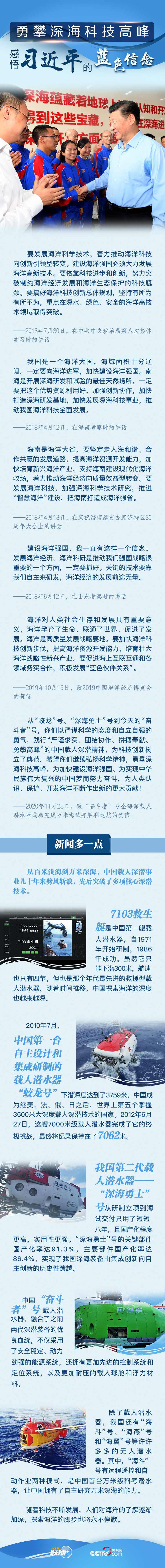 習(xí)近平總書記在賀信中指出,“奮斗者”號研制及海試的成功,標志著我國具有了進入世界海洋最深處開展科學(xué)探索和研究的能力,體現(xiàn)了我國在海洋高技術(shù)領(lǐng)域的綜合實力?倳浵M兄铝τ谏詈Qb備研發(fā)、深淵科學(xué)研究的科研工作者繼續(xù)弘揚科學(xué)精神,勇攀深?萍几叻,為加快建設(shè)海洋強國、為實現(xiàn)中華民族偉大復(fù)興的中國夢而努力奮斗,為人類認識、保護、開發(fā)海洋不斷作出新的更大貢獻。