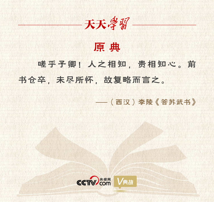 信中李陵為自己當(dāng)年投降匈奴的行為進(jìn)行辯白,并對(duì)蘇武發(fā)出了“人之相知,貴相知心”的慨嘆,認(rèn)為人與人之間的相互理解,最可貴的是彼此心靈相通。YhQ安康新聞網(wǎng)