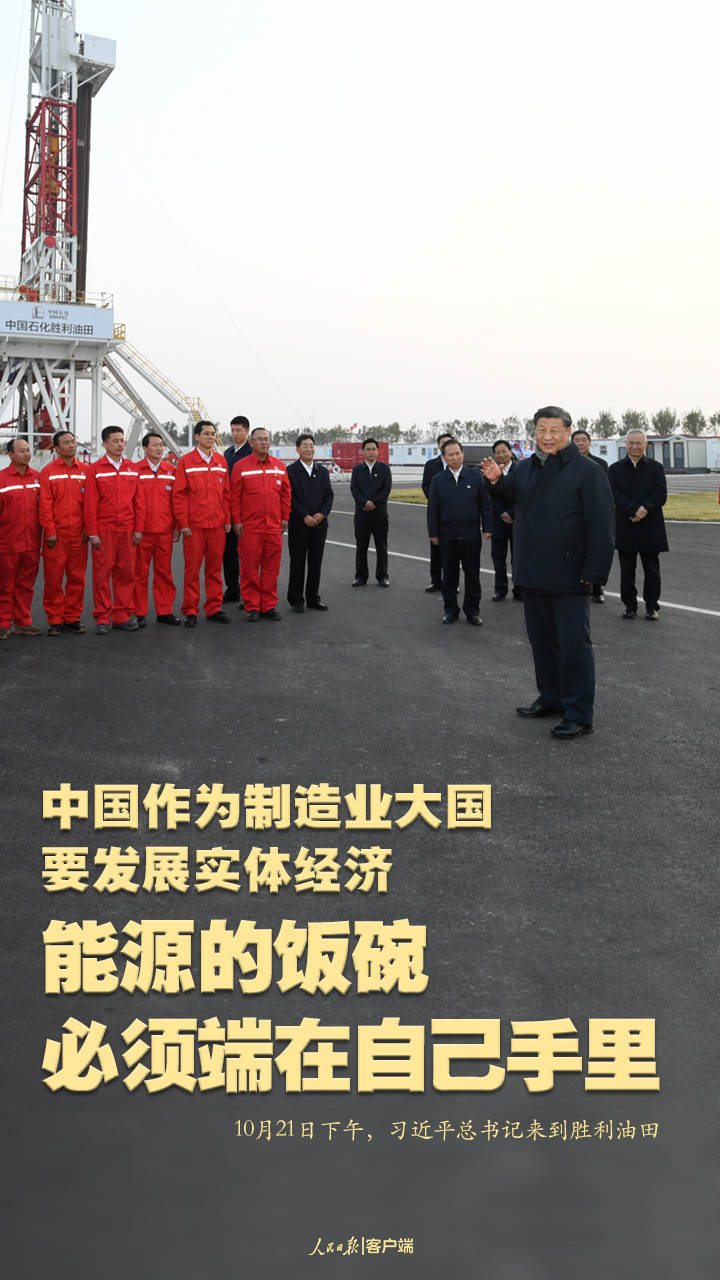 21日下午,習(xí)近平總書記來到勝利油田,登上鉆井平臺,察看作業(yè)情況,看望慰問石油工人。今年是勝利油田發(fā)現(xiàn)60周年。習(xí)近平代表黨中央向廣大石油職工致以誠摯問候。習(xí)近平指出,石油能源建設(shè)對我們國家意義重大,中國作為制造業(yè)大國,要發(fā)展實體經(jīng)濟(jì),能源的飯碗必須端在自己手里。希望你們再創(chuàng)佳績、再立新功。 8nN安康新聞網(wǎng)