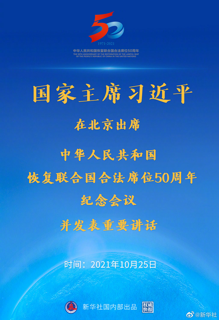 權(quán)威快報(bào)丨習(xí)近平出席中華人民共和國(guó)恢復(fù)聯(lián)合國(guó)合法席位50周年紀(jì)念會(huì)議并發(fā)表重要講話
