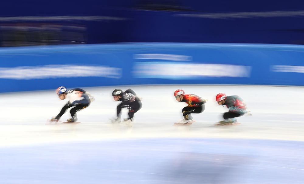 10月22日,選手在首都體育館參加2021-2022國際滑聯(lián)短道速滑世界杯北京站比賽。新華社記者曹燦攝