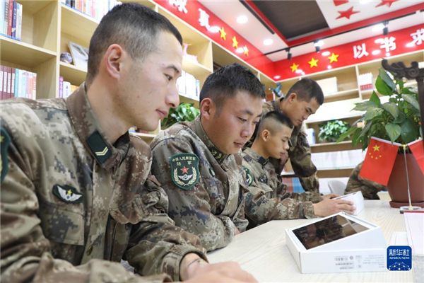 中共中央總書記、國家主席、中央軍委主席習近平24日下午出席軍隊領導干部會議時發(fā)表的重要講話,在解放軍和武警部隊引起強烈反響。這是新疆軍區(qū)奧爾托蘇邊防連官兵在圖書室認真學習習主席重要講話(10月25日攝)。新華社發(fā)(劉南松 攝)ZWw安康新聞網(wǎng)