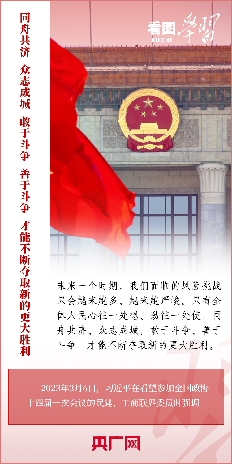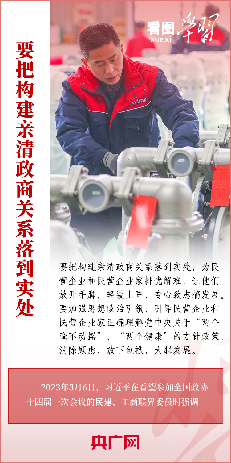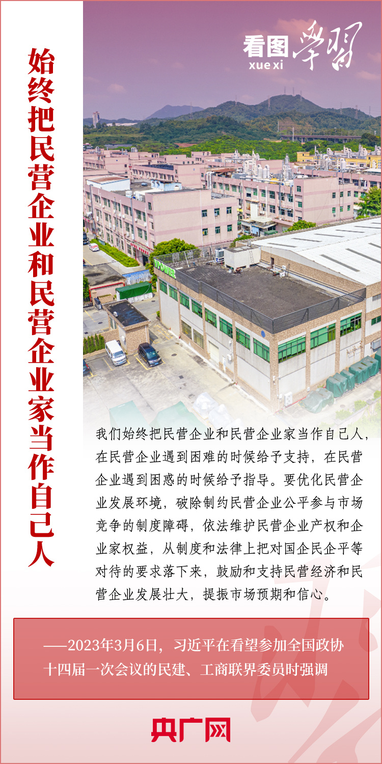 3月6日下午,習(xí)近平總書記看望參加全國政協(xié)十四屆一次會(huì)議的民建、工商聯(lián)界委員,并參加聯(lián)組會(huì),聽取意見和建議。總書記強(qiáng)調(diào),黨中央始終堅(jiān)持“兩個(gè)毫不動(dòng)搖”“三個(gè)沒有變”,始終把民營企業(yè)和民營企業(yè)家當(dāng)作自己人。要引導(dǎo)民營企業(yè)和民營企業(yè)家正確理解黨中央方針政策,增強(qiáng)信心、輕裝上陣、大膽發(fā)展,實(shí)現(xiàn)民營經(jīng)濟(jì)健康發(fā)展、高質(zhì)量發(fā)展。一起來學(xué)習(xí)!