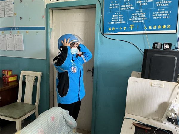 祖國(guó)大西北,寧夏銀川。4月29日下午4點(diǎn)半,外賣女騎手丁國(guó)梅麻利地穿起工服、戴上口罩、戴好頭盔,風(fēng)風(fēng)火火開(kāi)始了晚高峰送餐。