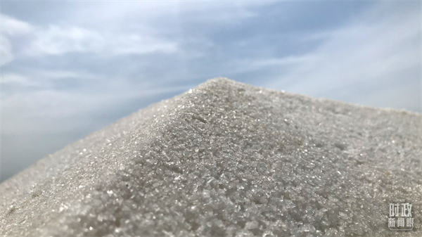 △鹽湖出產(chǎn)的河?xùn)|大鹽。(總臺央視記者石偉明拍攝)