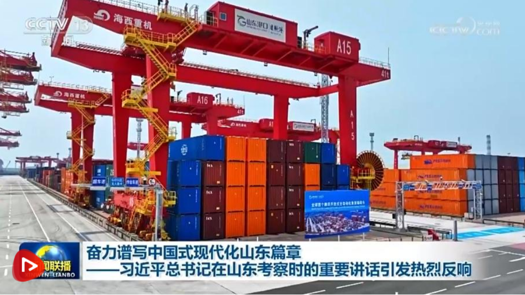 黃海之濱,山東日照港全自動化集裝箱碼頭上無人駕駛集裝箱卡車往來穿梭。習(xí)近平總書記首先來到這里考察,他指出,日照港近年來推進(jìn)科技創(chuàng)新,將傳統(tǒng)港口改造升級為現(xiàn)代化港口,不僅貨物吞吐量躋身全國前列,還積累了通過傳統(tǒng)產(chǎn)業(yè)改造升級發(fā)展新質(zhì)生產(chǎn)力的經(jīng)驗(yàn),值得肯定。