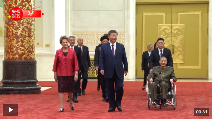 習近平指出,75年來,世界上有很多與中國人民志同道合、風雨同舟的老朋友、好朋友,今天被授予“友誼勛章”的迪爾瑪·羅塞芙女士就是其中的杰出代表。中國人民永遠不會忘記那些為中國發(fā)展、增進中國人民同各國人民友誼作出突出貢獻的國際友人。中國人民愿攜手世界各國人民,維護世界和平,促進共同發(fā)展,推動構(gòu)建人類命運共同體,開創(chuàng)人類更加美好的未來。