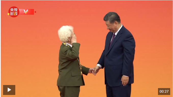 中華人民共和國國家勛章和國家榮譽稱號頒授儀式9月29日上午10時在人民大會堂隆重舉行。中共中央總書記、國家主席、中央軍委主席習近平向“人民藝術(shù)家”國家榮譽稱號獲得者田華頒授獎章。Zsw安康新聞網(wǎng)