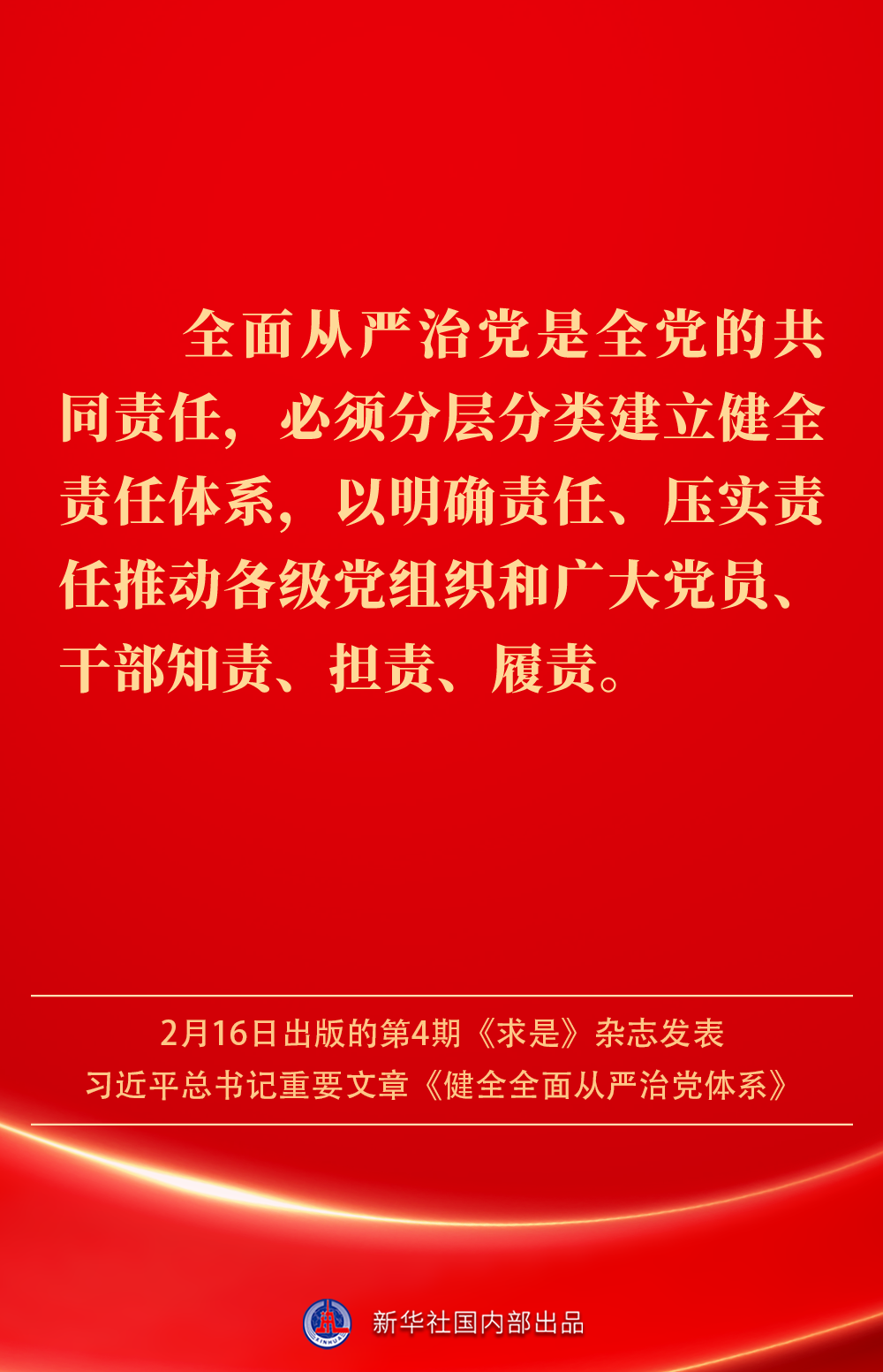 2月16日出版的第4期《求是》雜志發(fā)表習(xí)近平總書記重要文章《健全全面從嚴(yán)治黨體系》。如何進(jìn)一步健全要素齊全、功能完備、科學(xué)規(guī)范、運(yùn)行高效的全面從嚴(yán)治黨體系?習(xí)近平總書記闡明要旨——Evk安康新聞網(wǎng)