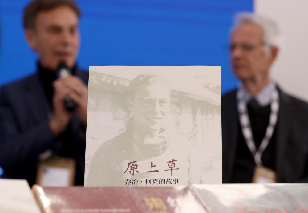 這是3月12日在英國(guó)倫敦書(shū)展上展示的《原上草:?jiǎn)讨?middot;何克的故事》中文版新書(shū)。新華社記者 李穎 攝