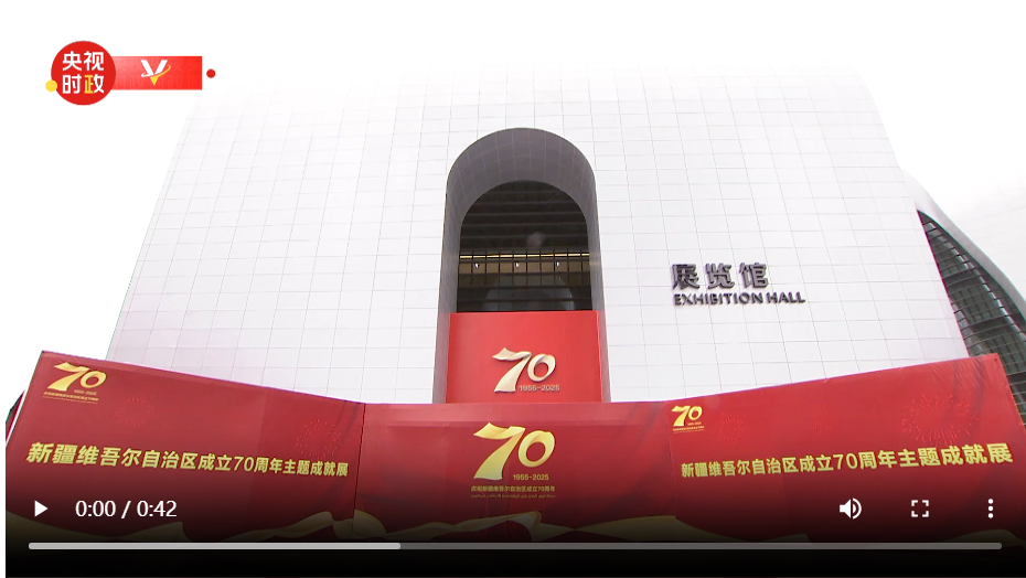 上午10時(shí)30分許,習(xí)近平等來(lái)到烏魯木齊文化中心展覽館,走進(jìn)展廳參觀成就展。展覽通過(guò)“萬(wàn)方樂(lè)奏換新天”“潮涌天山展宏圖”“美麗新疆鑄輝煌”3個(gè)部分,全景展現(xiàn)了70年來(lái)在中國(guó)共產(chǎn)黨堅(jiān)強(qiáng)領(lǐng)導(dǎo)下、在全國(guó)各地大力支援下,新疆各族人民團(tuán)結(jié)一心、艱苦奮斗、頑強(qiáng)拼搏取得的輝煌成就。
